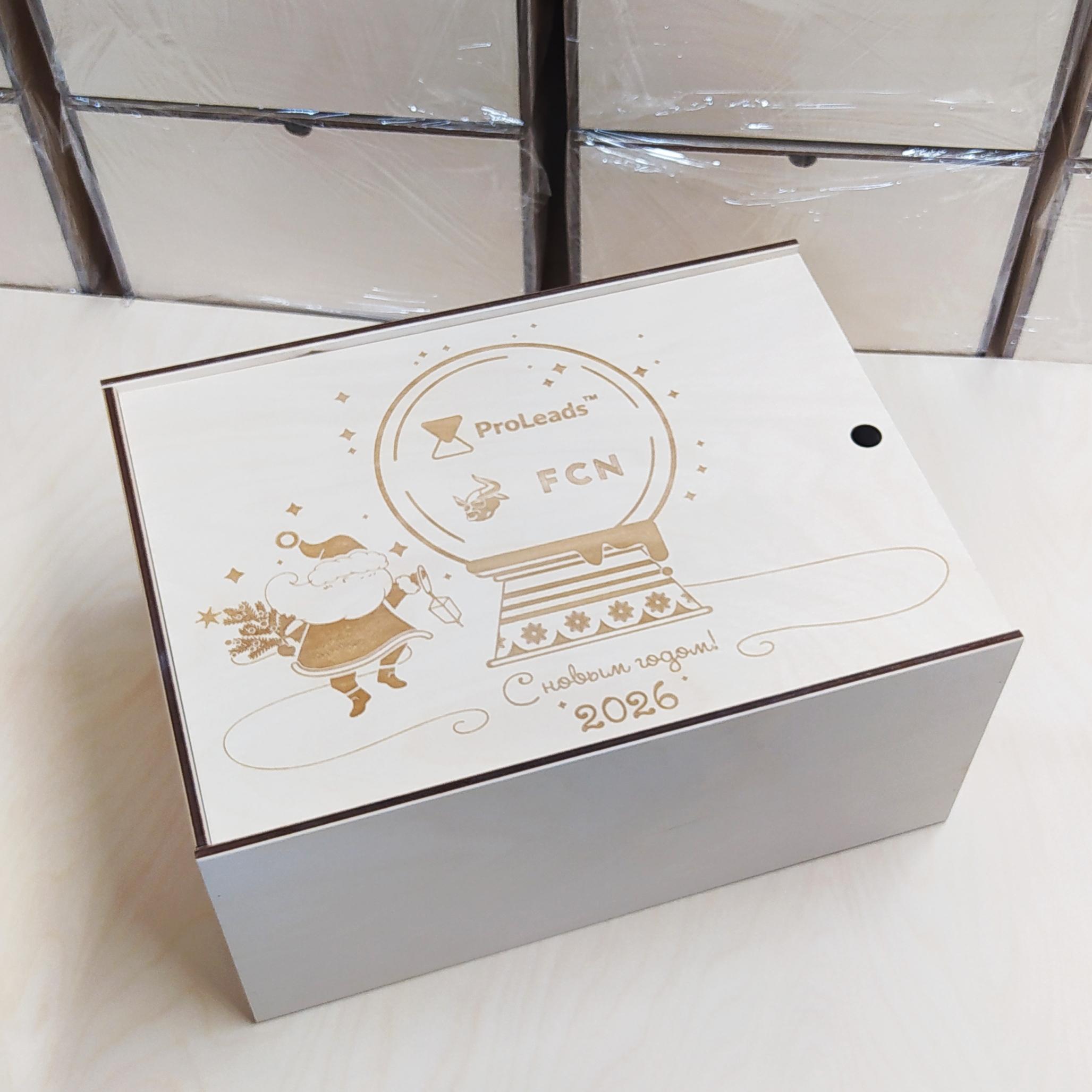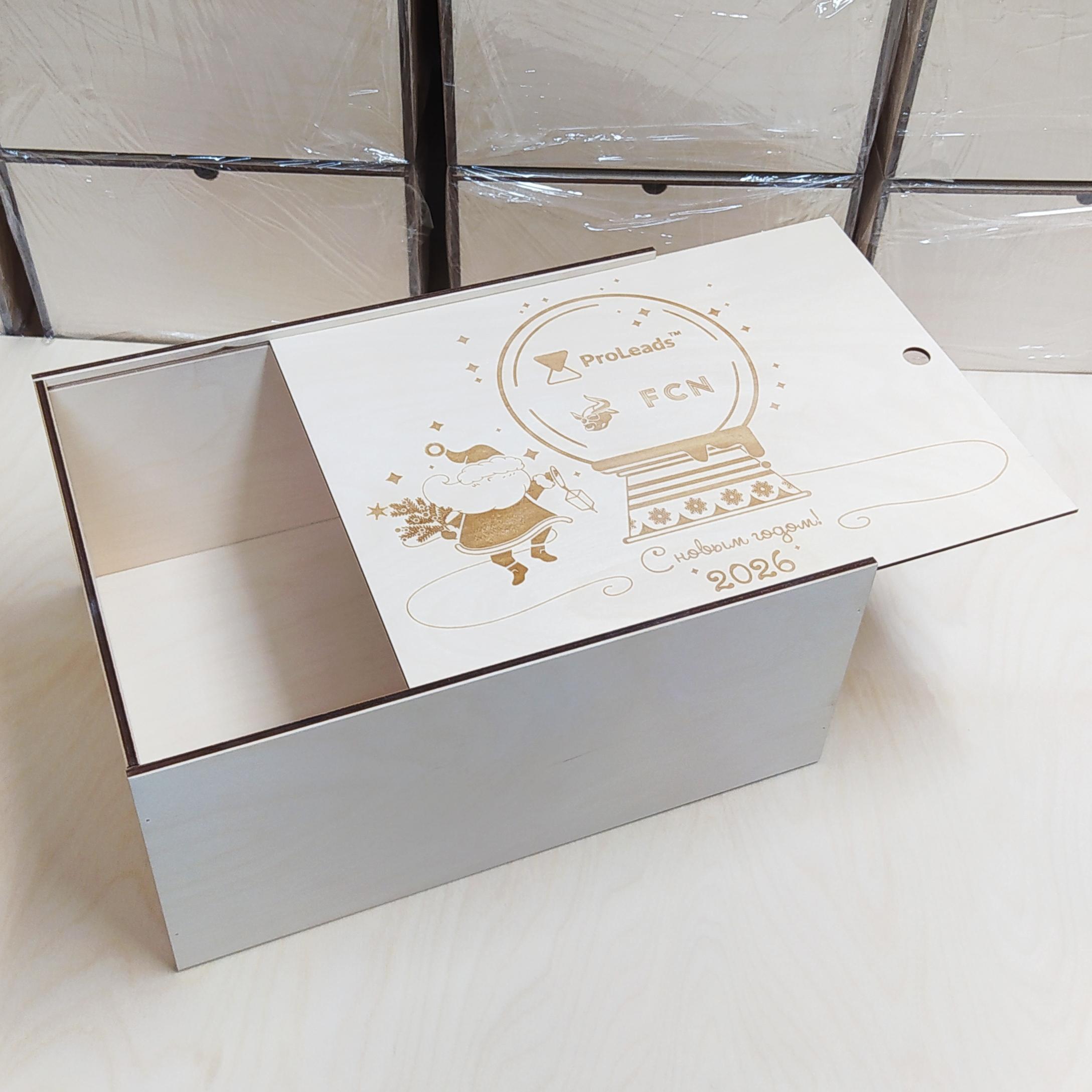 из шлифованной фанеры в натуральном цвете с индивидуальной гравировкой. Открывание крышки - вправо Стенки коробки - фанера 6 мм Крышка коробки - фанера 3 мм Гравировка большого размера.