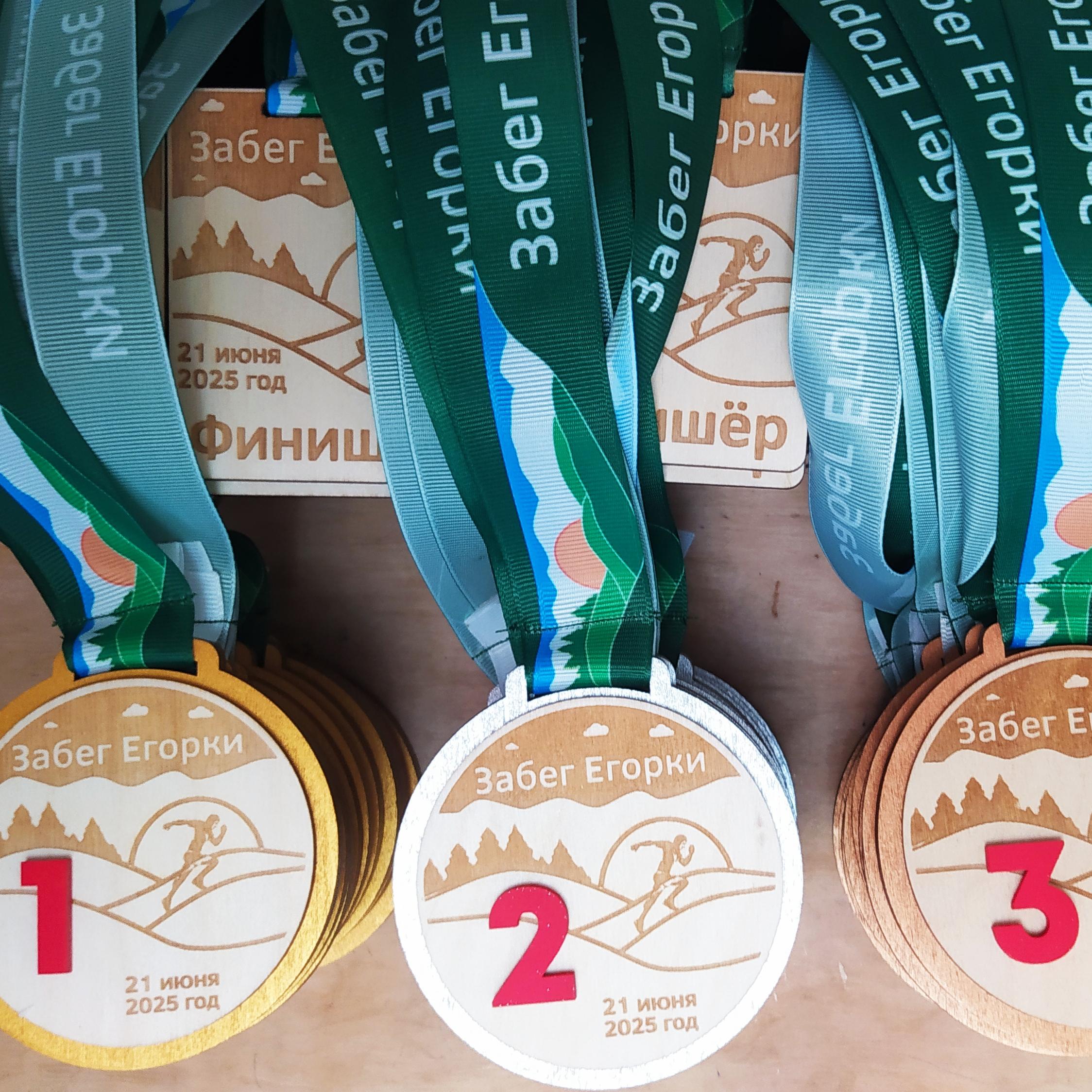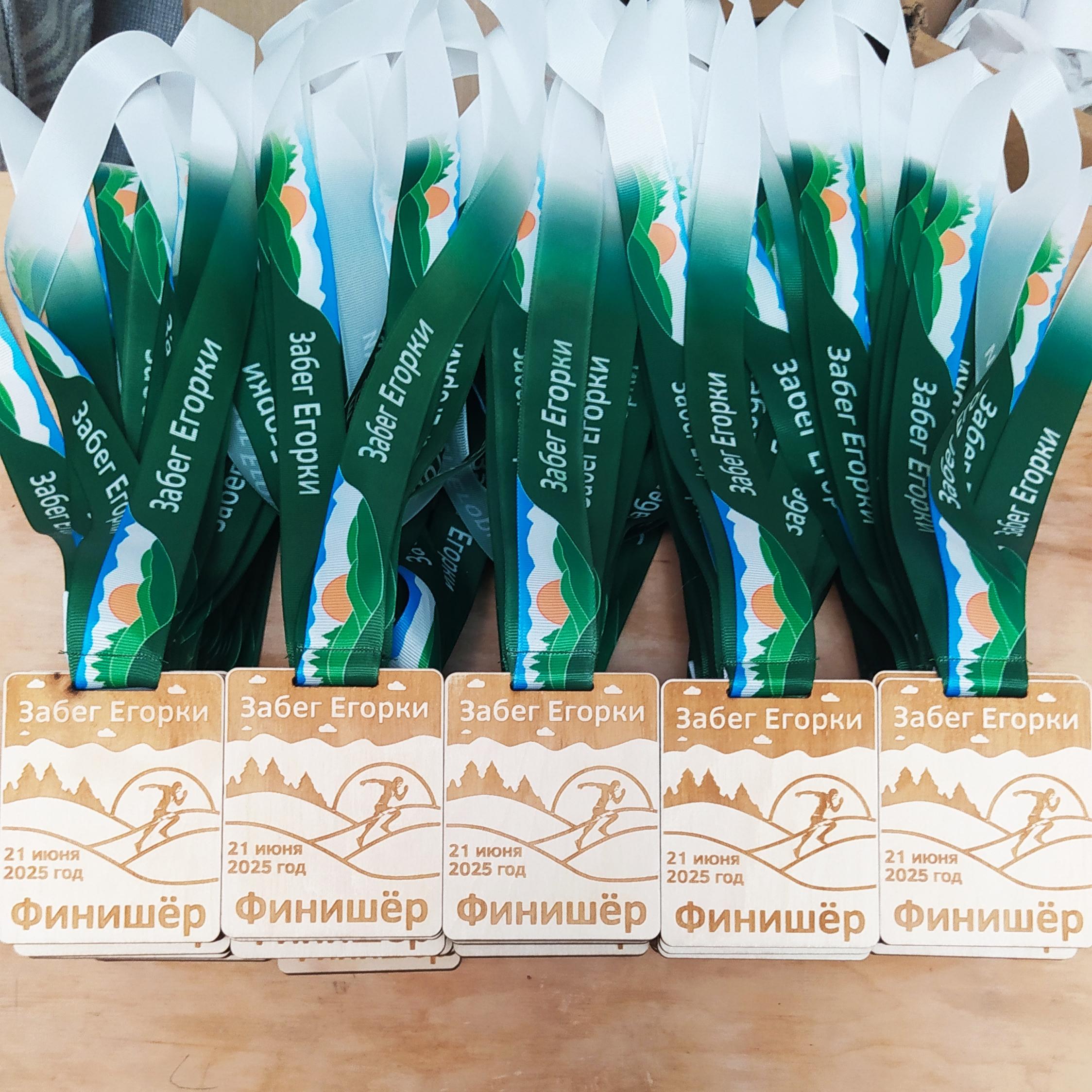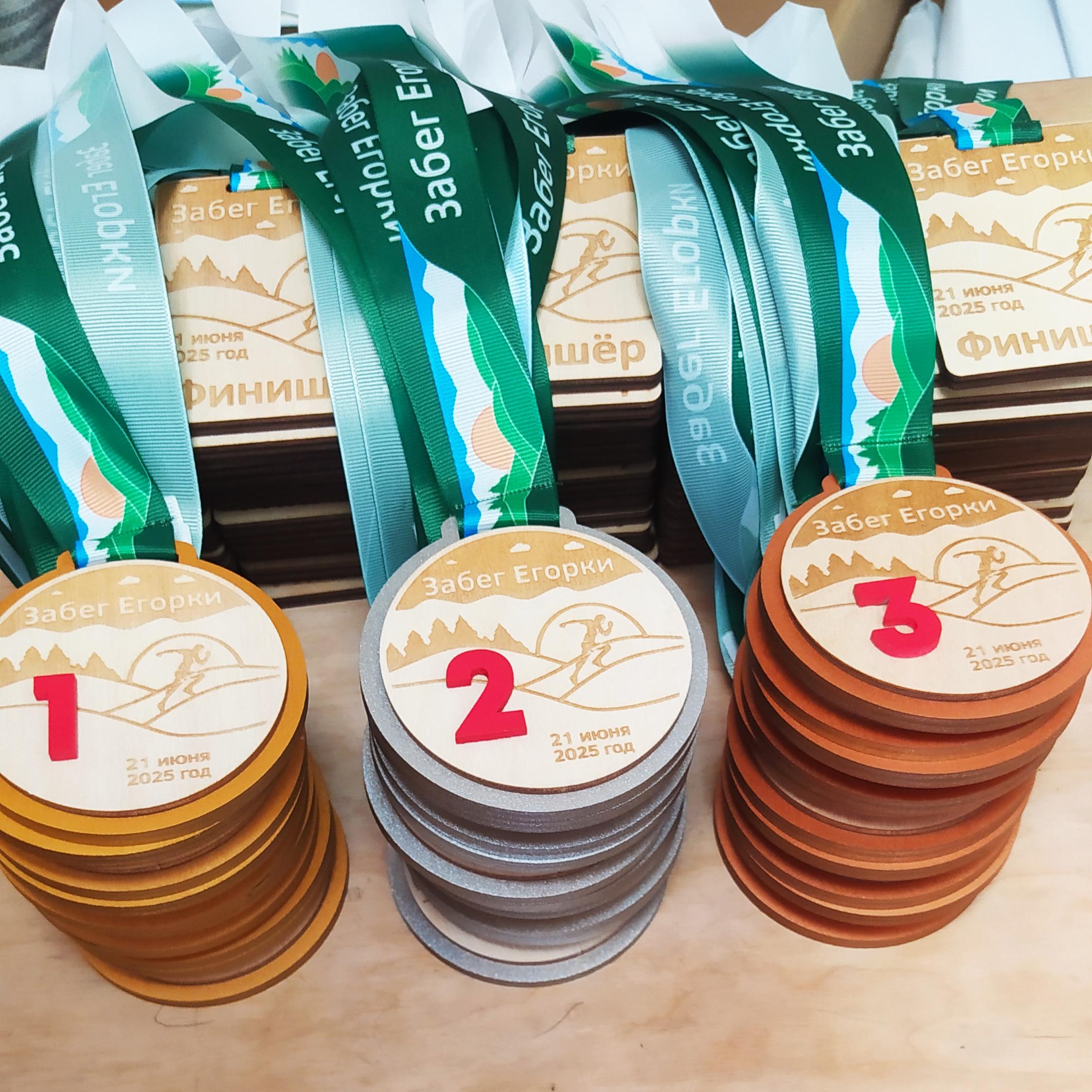 Интересное сочетание: лаконичная гравировка на фанере и яркая лента. Толщина медали 6 мм. Лента рэпс с сублимационной печатью. Трёхслойные призовые медали выполнены из фанеры 6 и 3 мм Окрашены эмалью металлик. Цена призовых медалей - 189 руб.