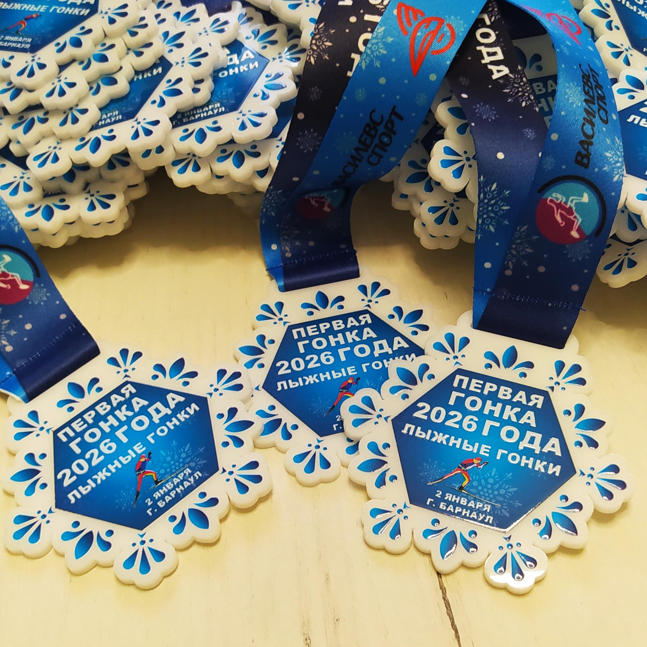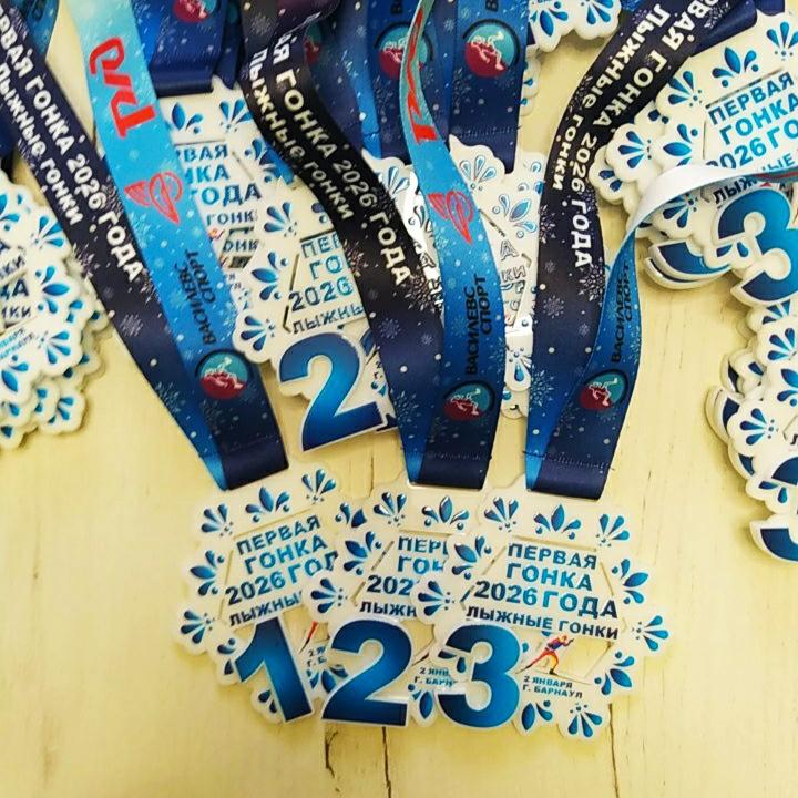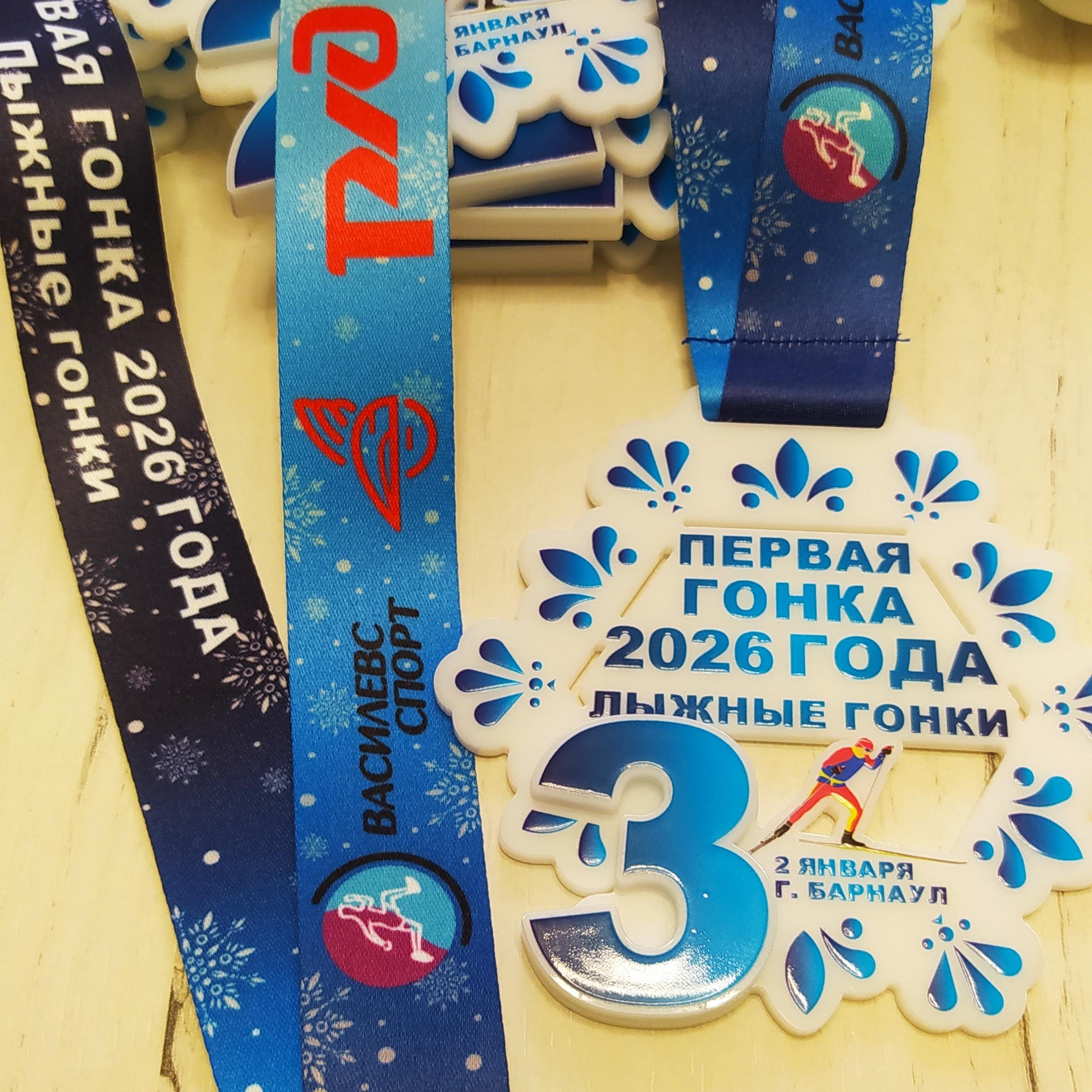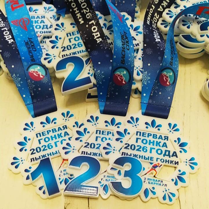 Яркие медали из акрила с УФ-ДТФ печатью и такой же яркой лентой для самой первой лыжной гонки в году. Толщина медали 3 мм Диаметр 8 см Полноцветная УФ-ДТФ печать не боится воздействия снега, холода, солнца, воды и т.п. Лента ланъярд премиум с сублимационной печатью (рисунок буквально впекается в структуру ткани, поэтому устойчивый к воде и не размывается).